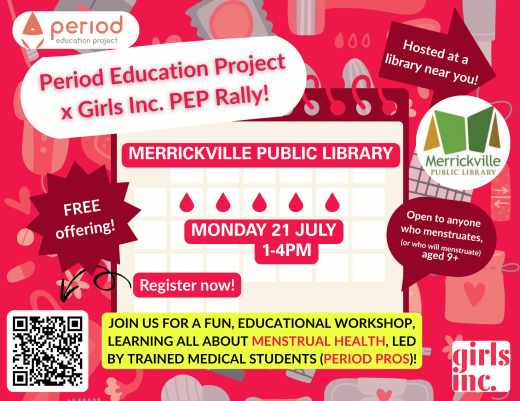 In partnership with the Merrickville Public Library and The Period Education Project, PEP Rally workshops are led by trained medical students (“Period Pros”) and are designed to give girls aged 9+ the honest, empowering, and judgment-free period talk they deserve.