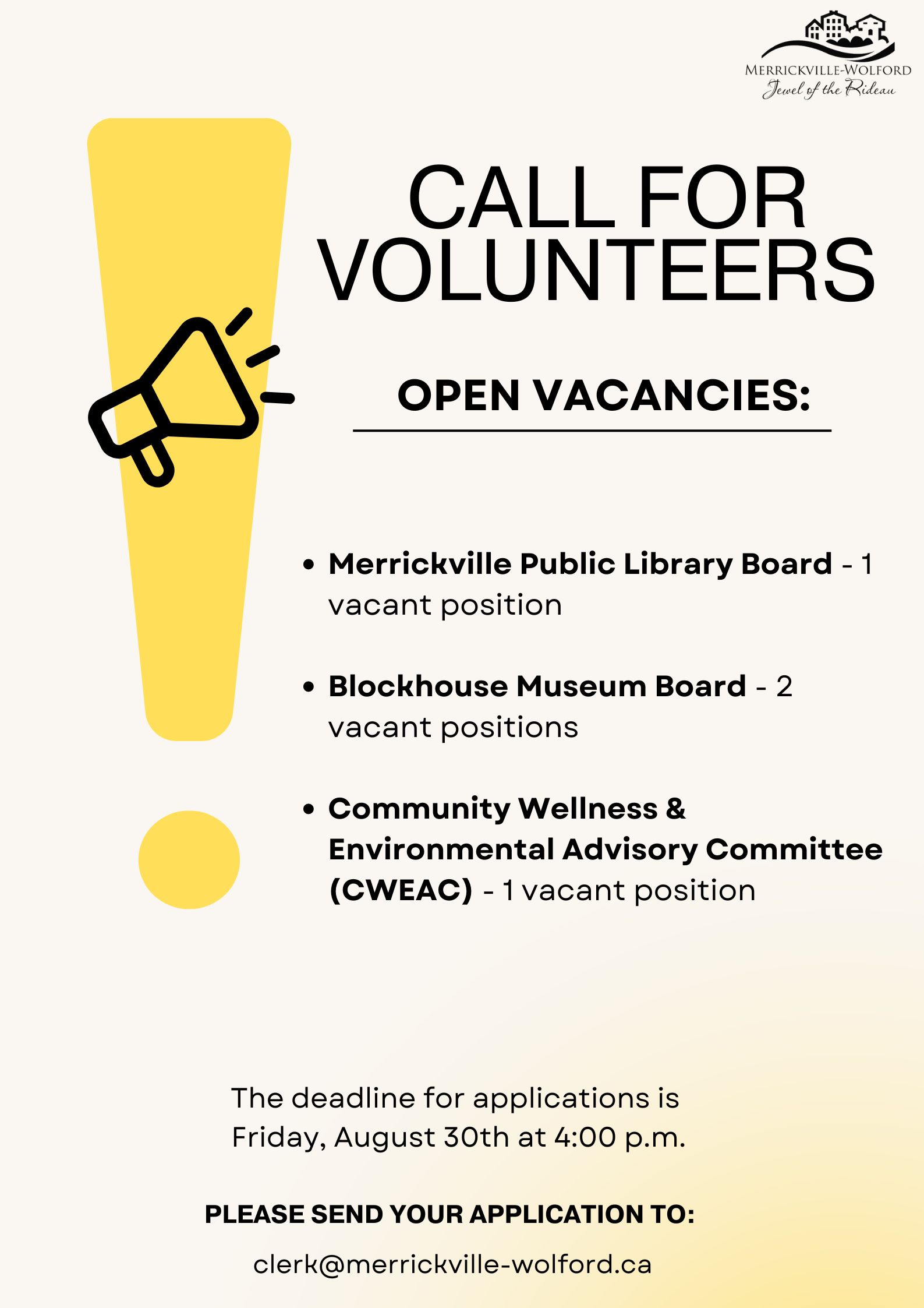 Are you looking for an opportunity to be involved and participate within the community? There is an open call for volunteers on boards and committees that we encourage residents to apply for!